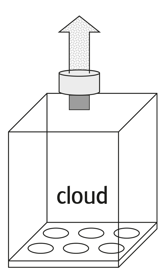 A typical Cloud exposure allows 3 consecutive nebulizations. The PowerVent option enables an increase of the dose by adding further nebulizations. After each nebulization the humidity is removed by a short venting period before starting the new one. The venting function can be edited in the software. The PowerVent unit is delivered ready-to-use with an integrated vacuum pump.